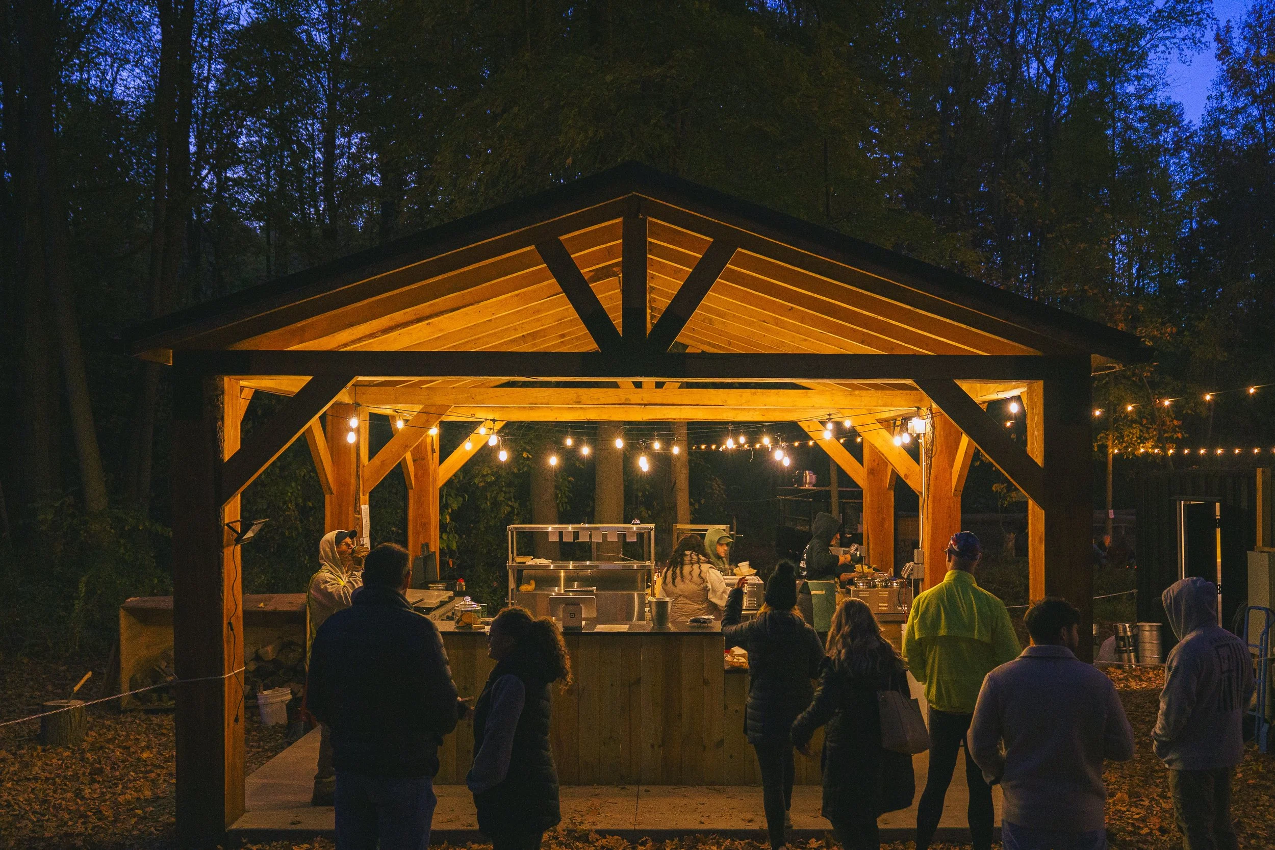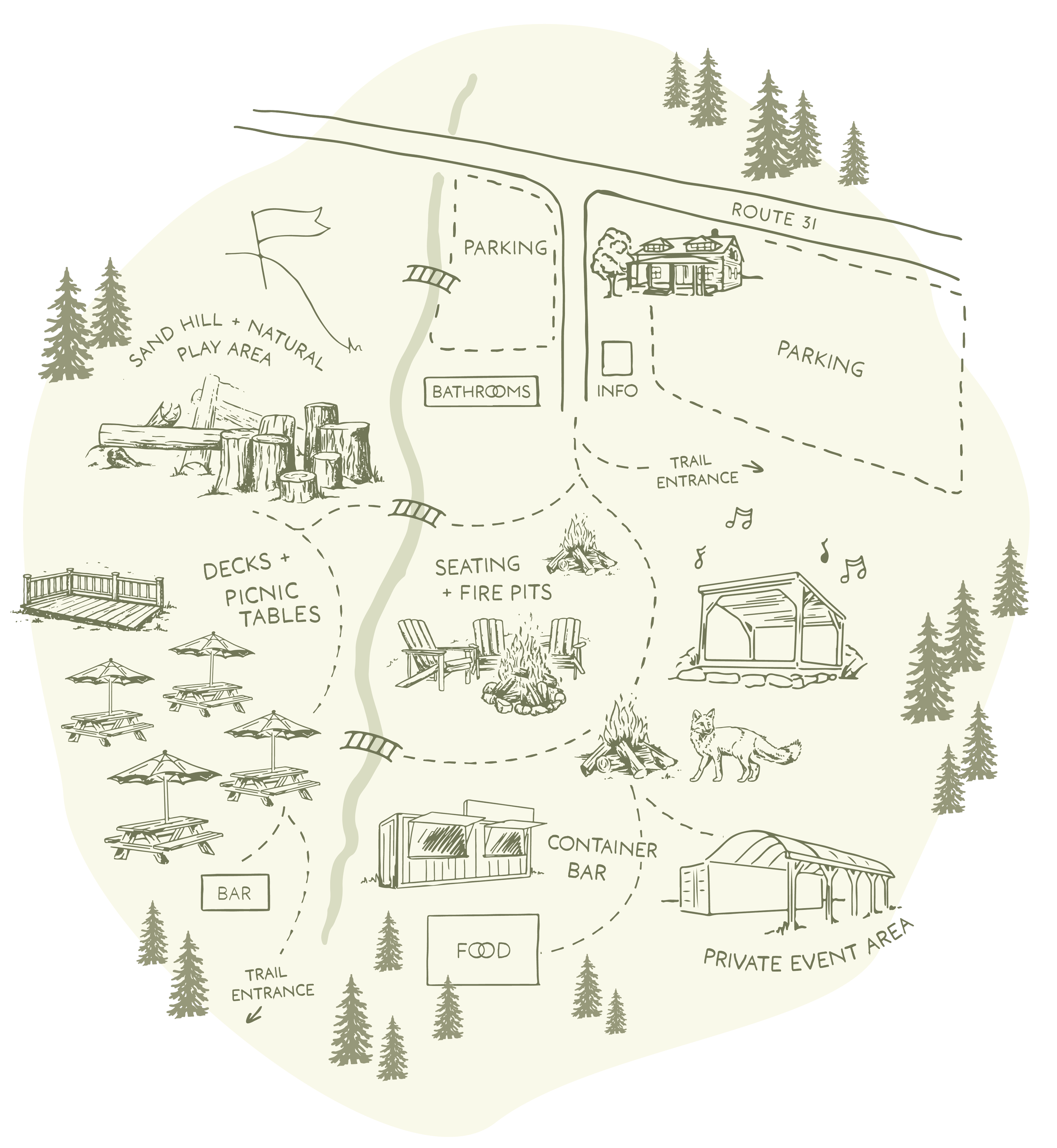Catch live music on the Backwoods stage every day Thursday–Sunday, weather permitting. Find the full lineup on our calendar below. A modest cover charge may charged at the gate depending on acts. Otherwise entry is free, although reservations may be booked for parking, picnic tables, the private party tent, and the treehouse decks (future).